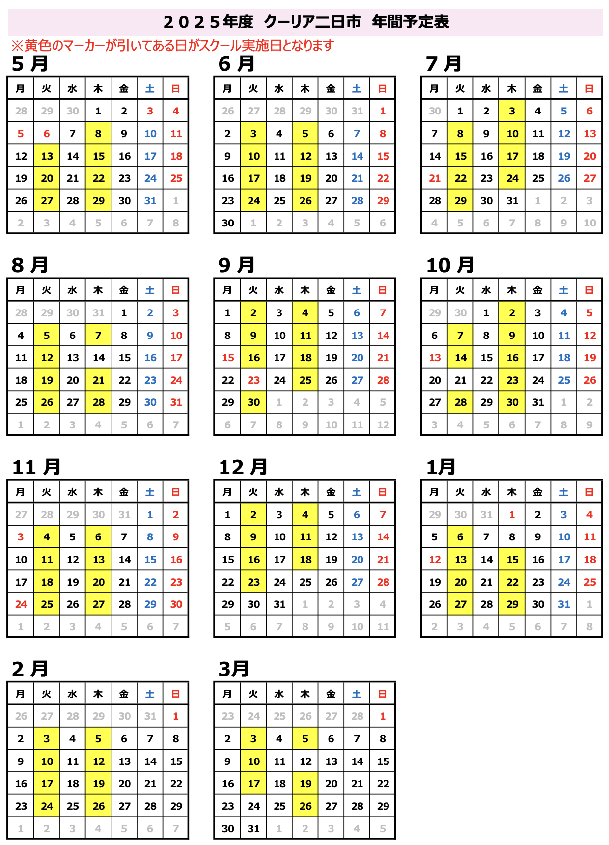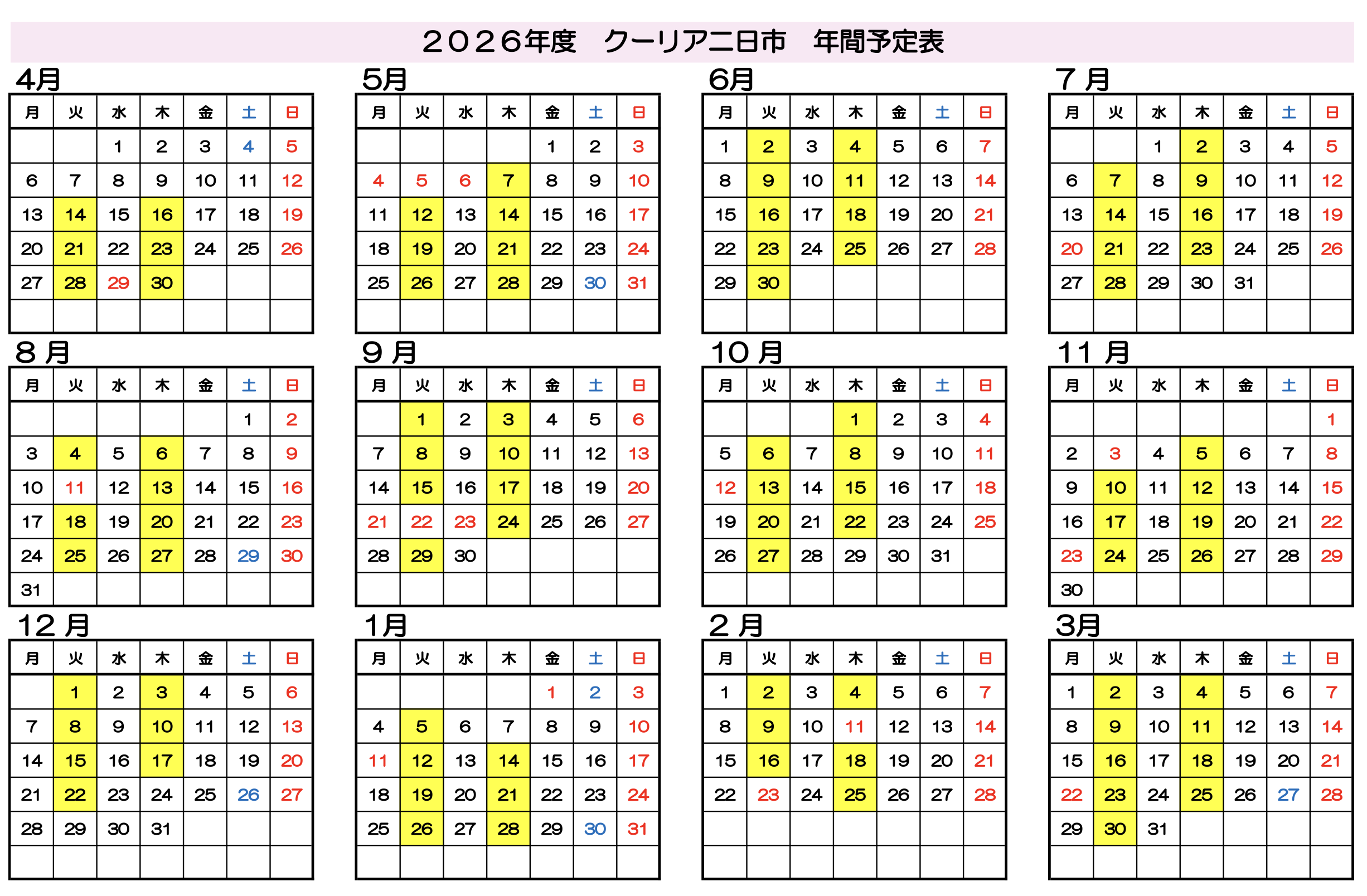 (月4回、年末年始、年度初め、年度終わり3回)